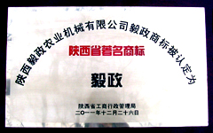 為積極推進我省商標戰(zhàn)略的實施,增強企業(yè)品牌意識,增強陜西產(chǎn)品的市場競爭力,根據(jù)《陜西省著名商標認定與管理暫行規(guī)定》的規(guī)定,經(jīng)研究,陜西省工商行政管理局認定陜西毅政農(nóng)業(yè)機械有限公司的注冊商標毅政為陜西省著名商標。
